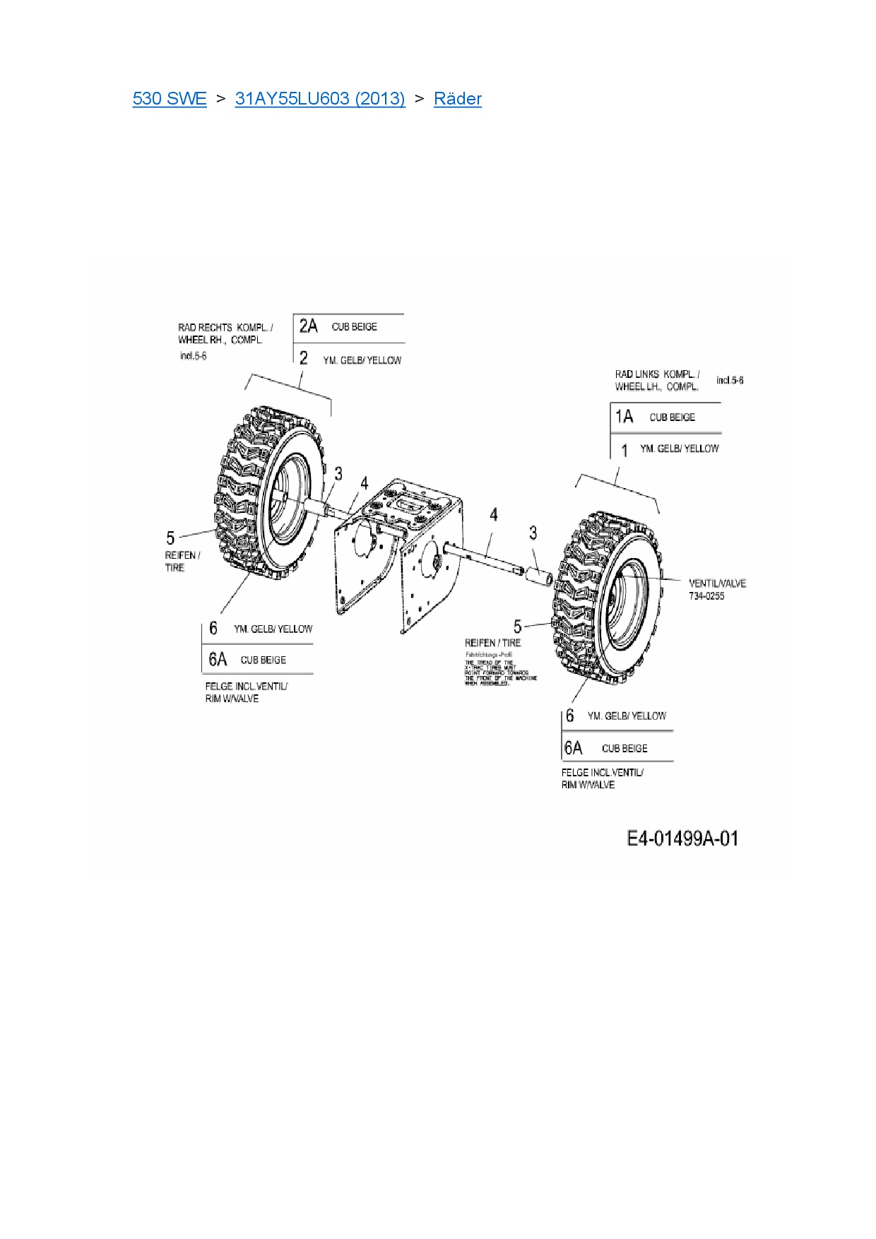 Ersatzteile für Schneefräse Cub Cadet 530 SWE aus der Zeichnung Räder:
