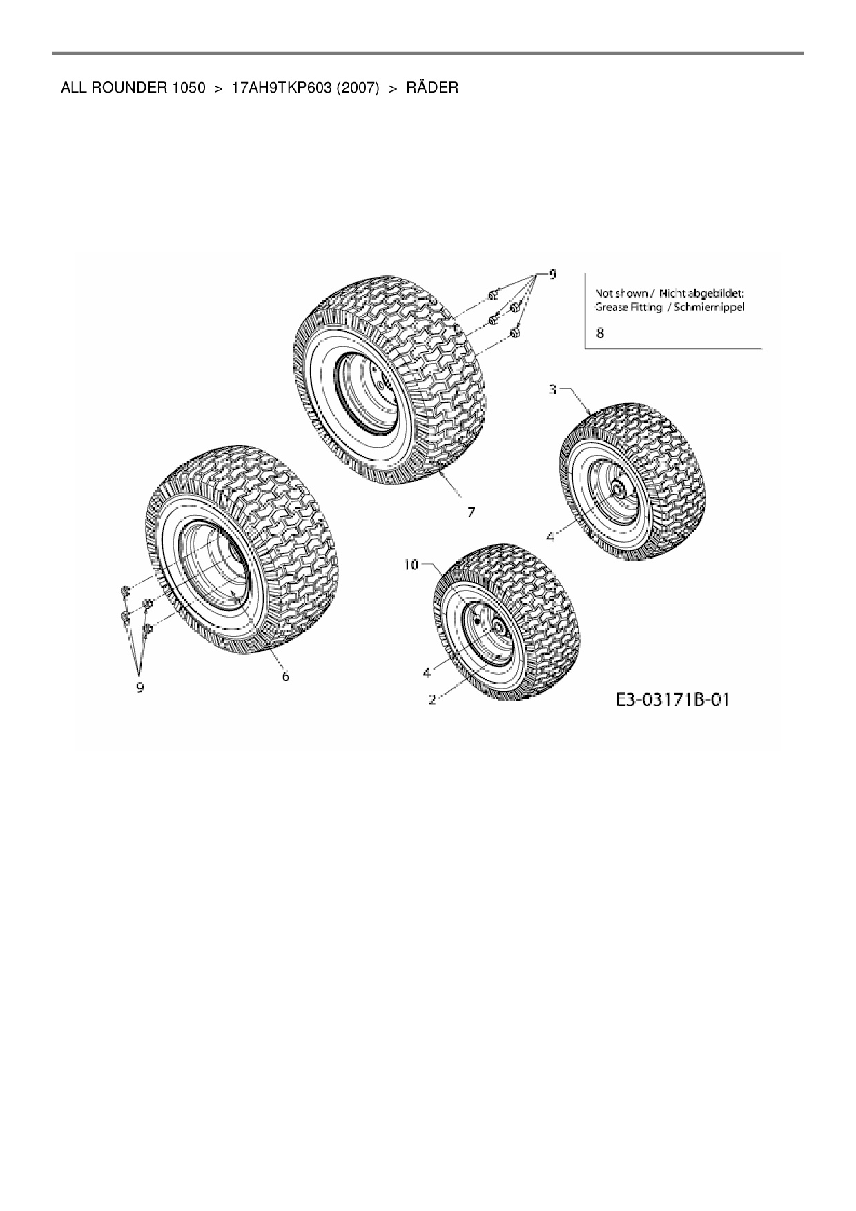 Ersatzteile für Zero Turn Cub Cadet All Rounder 1050 aus der Zeichnung Räder: