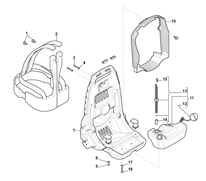 Rahmen Rucksack, Gurtzeug, Treibstofftank