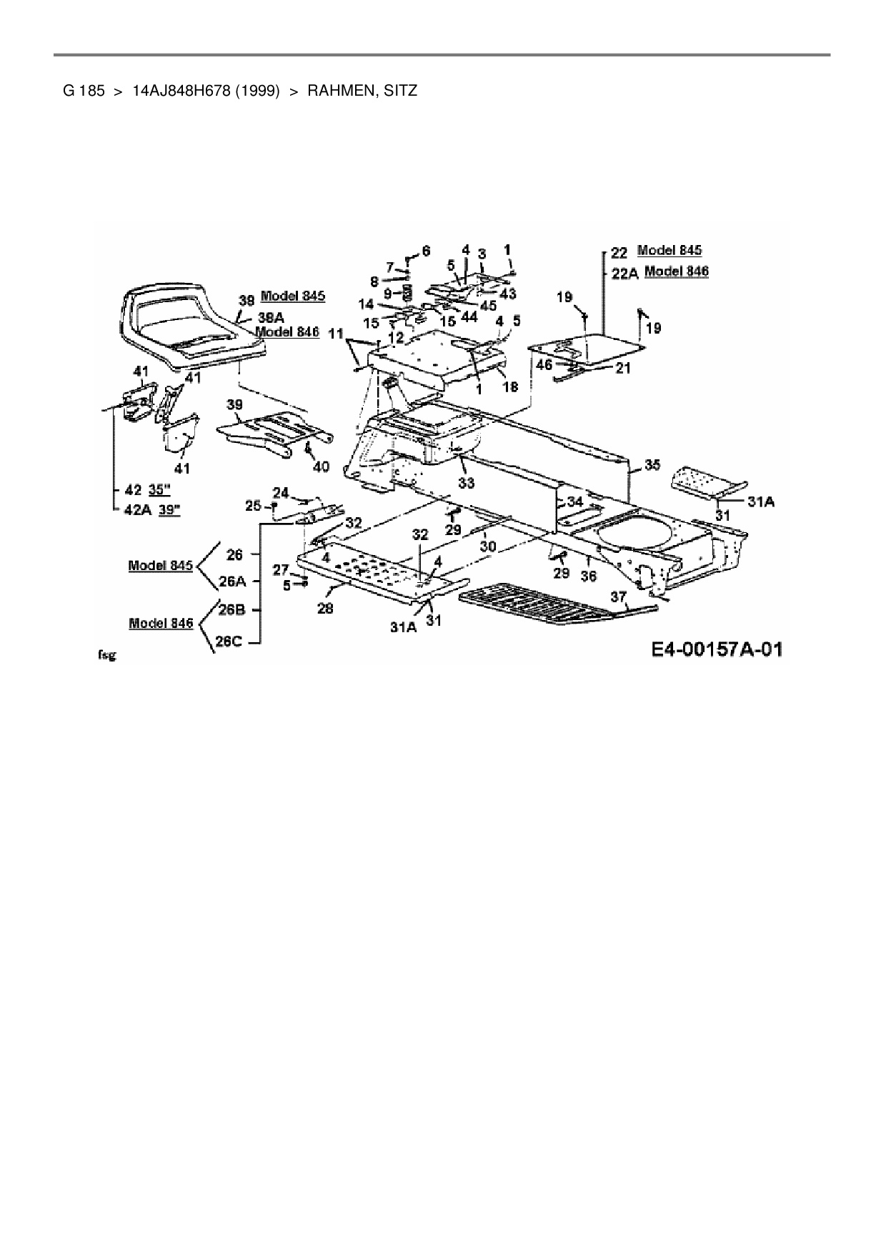 Download Ersatzteil-Zeichnung MTD G 185 Zeichnung Rahmen, Sitz (PDF-Format)