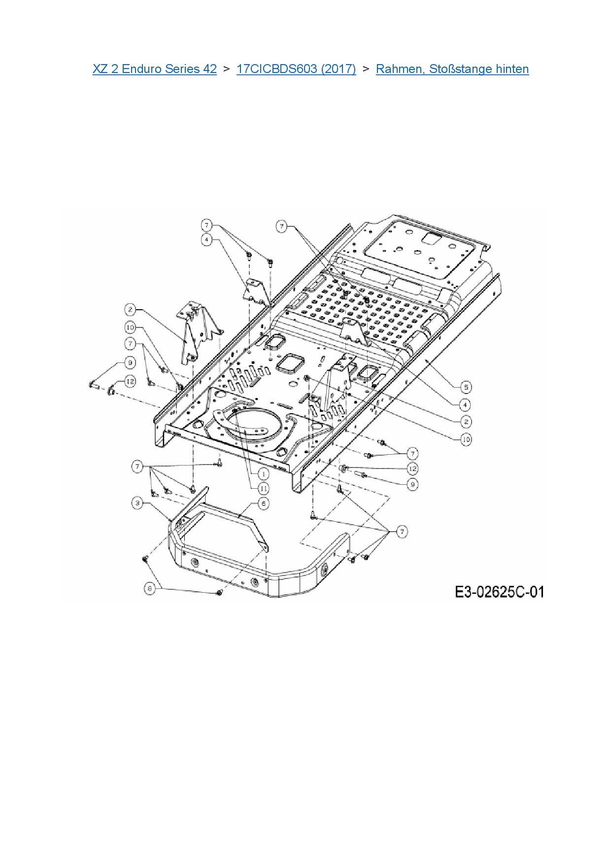 Ersatzteile für Zero Turn Cub Cadet XZ 2 Enduro Series 42 aus der Zeichnung Rahmen, Stoßstange hinten: