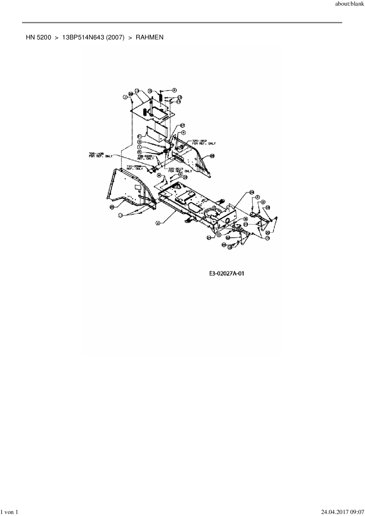 Download Ersatzteil-Zeichnung Yard-Man HN 5200 Zeichnung Rahmen (PDF-Format)