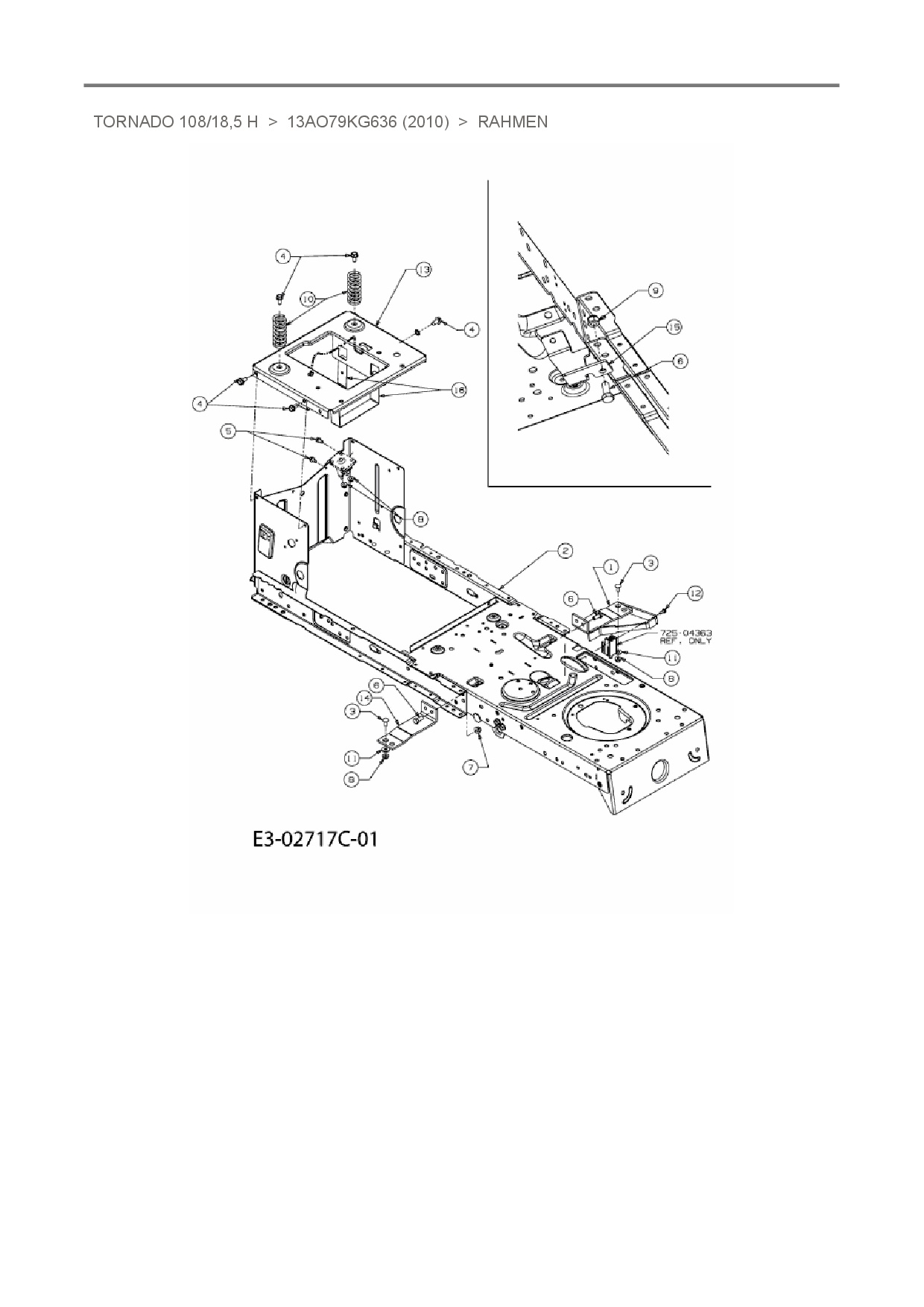 Download Ersatzteil-Zeichnung Oleo-Mac Tornado 108/18,5 H Zeichnung Rahmen (PDF-Format)