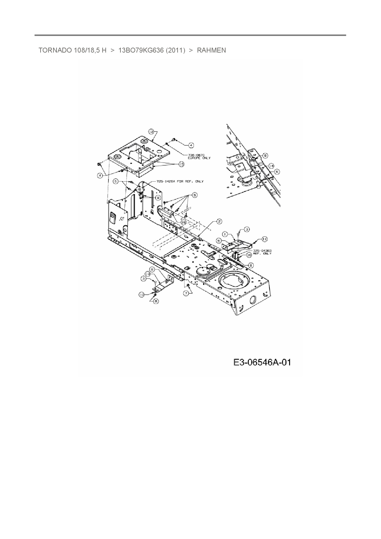 Zeichnung für Oleo-Mac Rasentraktor Tornado 108/18,5 H mit der Geräte-Artikelnr. 13BO79KG636 ab Baujahr 2011: