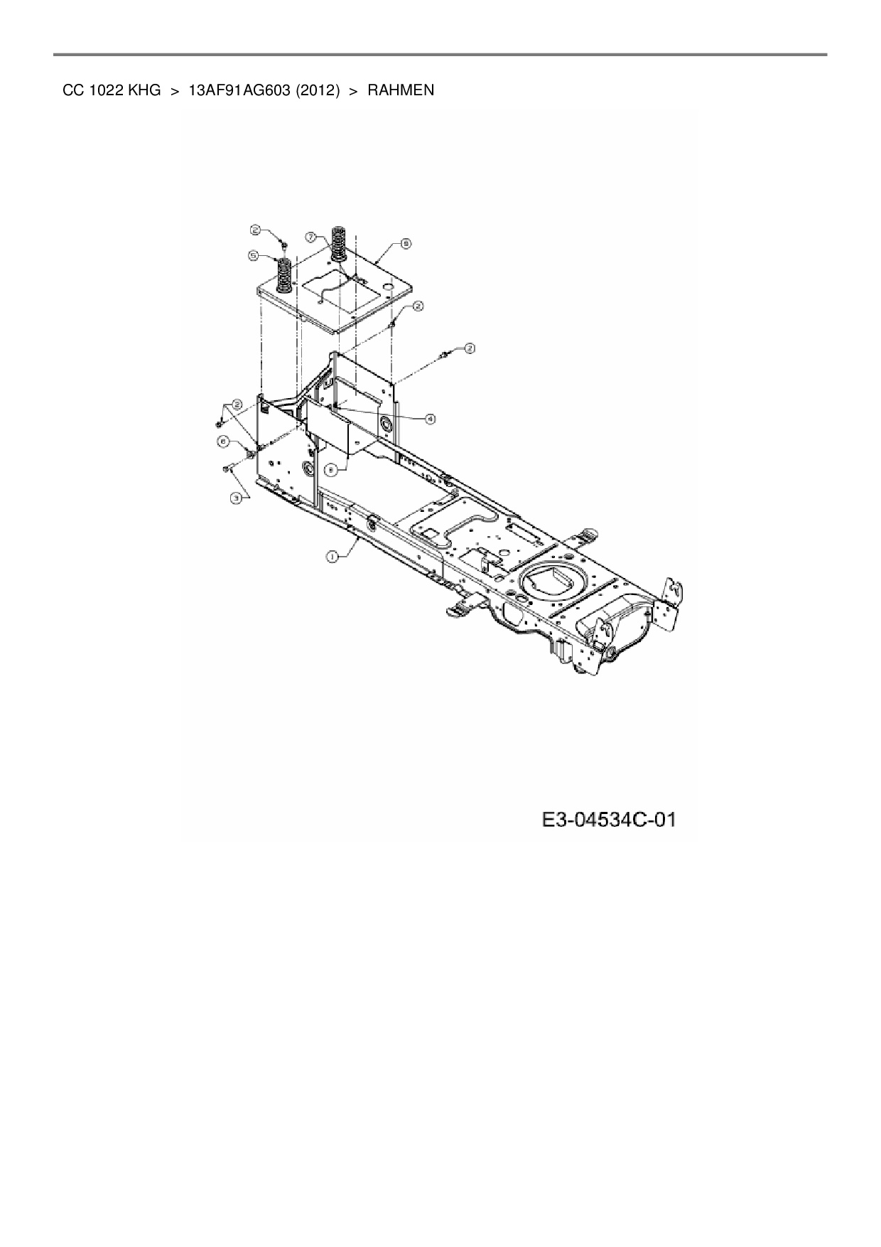 Ersatzteile für Rasentraktor Cub Cadet CC 1022 KHG aus der Zeichnung Rahmen:
