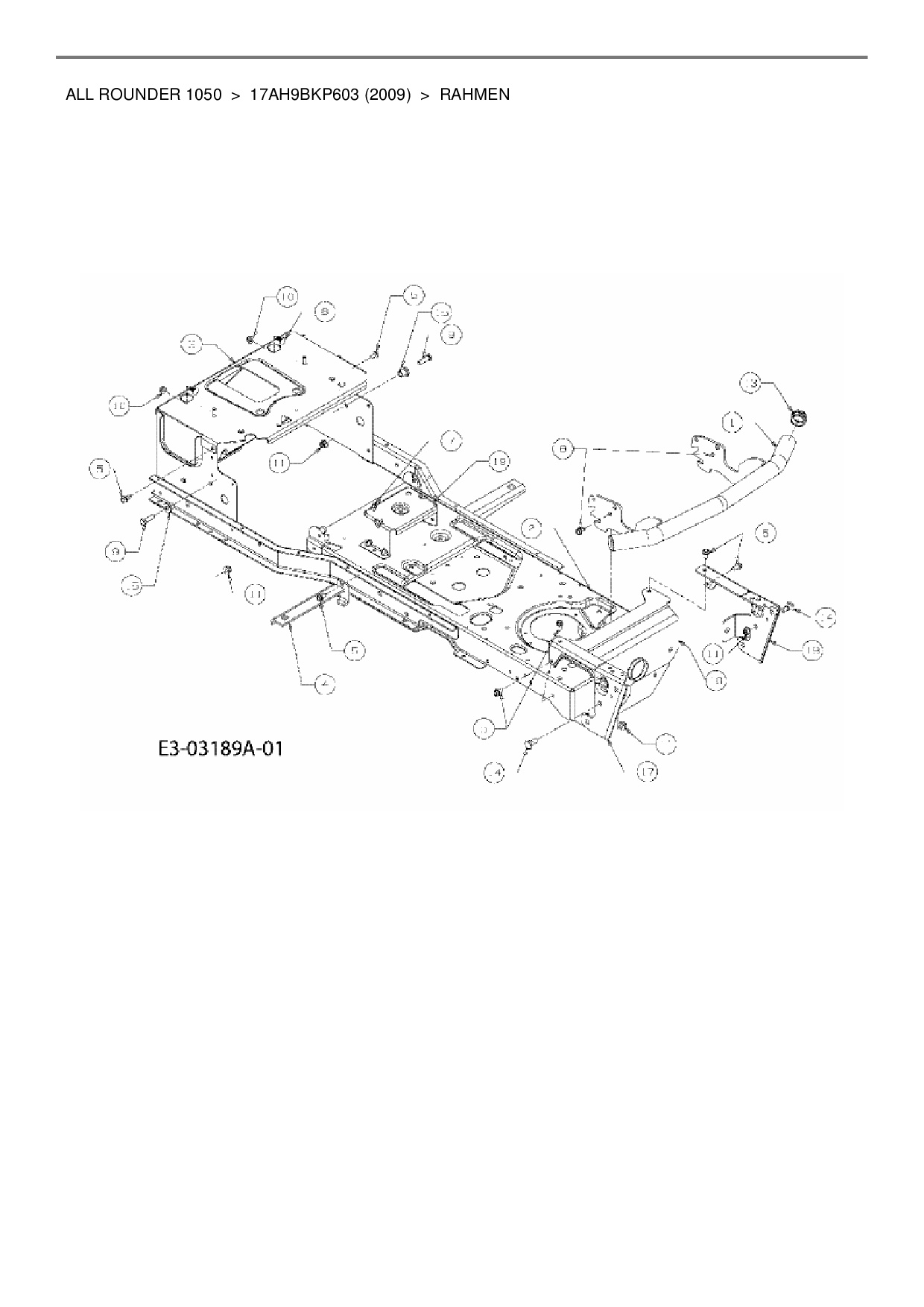 Ersatzteile für Zero Turn Cub Cadet All Rounder 1050 aus der Zeichnung Rahmen: