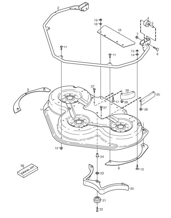 Zeichnungen von Stiga Frontaufsitzmäher Park Mähdecks mit Geräte Nr. 13-2938-39 ab Baujahr 2006