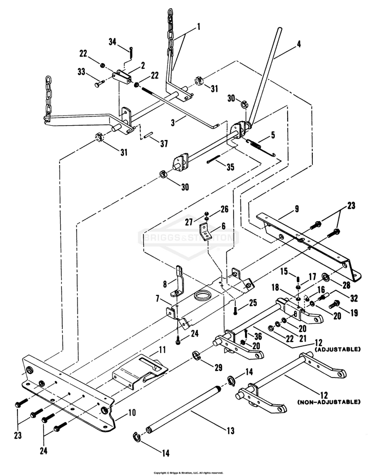 Zeichnung Snapper 89396 - 25083S, 25" 8 HP Rear Engine Rider Series 3 - Zeichnungsgruppe Rails, Lift Arms, Cam Lift: