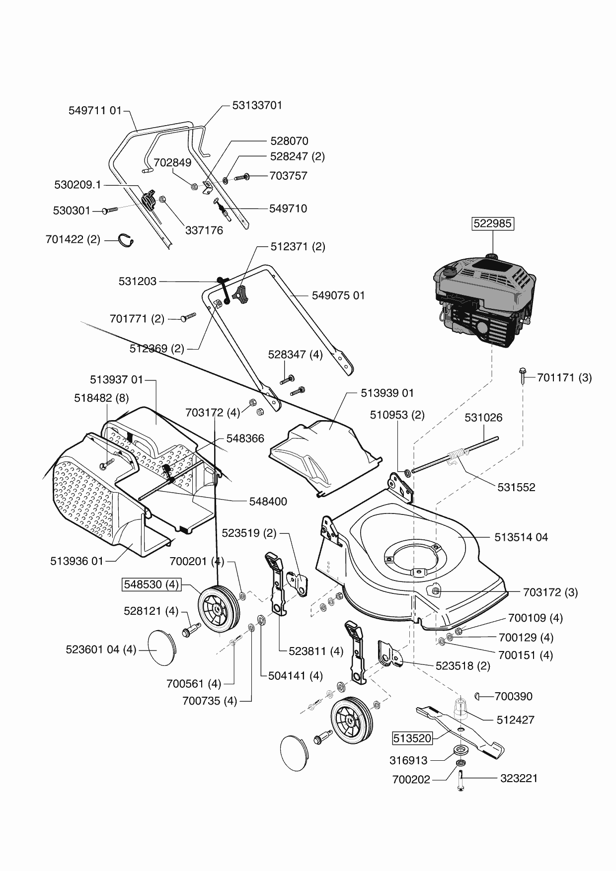 Zeichnungen von Ginge Benzinrasenmäher Rasaero 46 B mit der Geräte-Artikelnr. 120955: