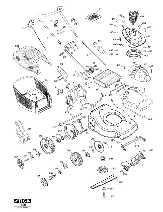 Hier finden Sie alle Ersatzteile von Stiga Elektro-Rasenmäher ab 2004 Ladybird 45 EL (Geräte Nr 24-2766-50) aus dem Zeichnungsblatt Rasenmäher (1):