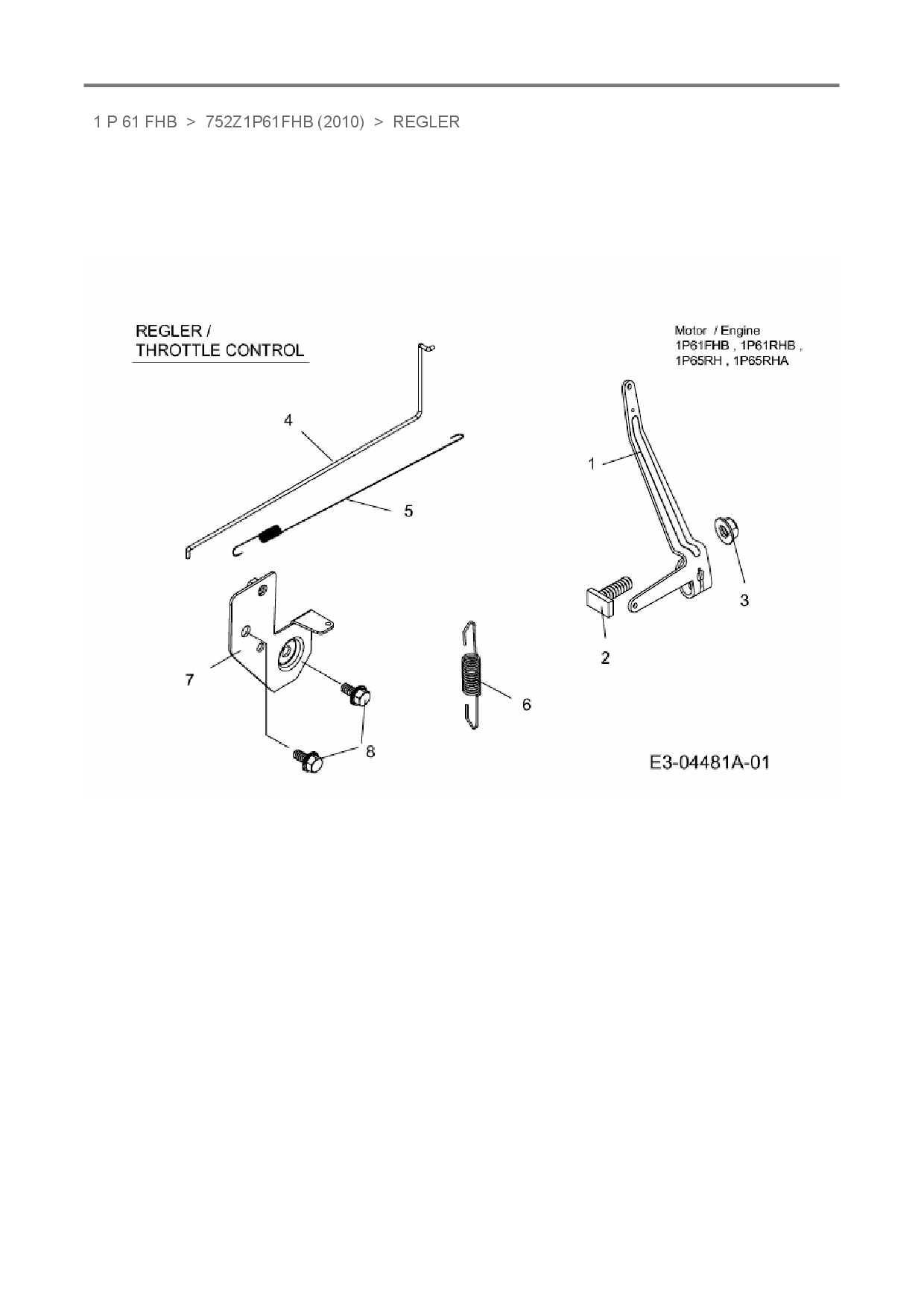 Download Ersatzteil-Zeichnung MTD-Motoren 1 P 61 FHB Zeichnung Regler (PDF-Format)