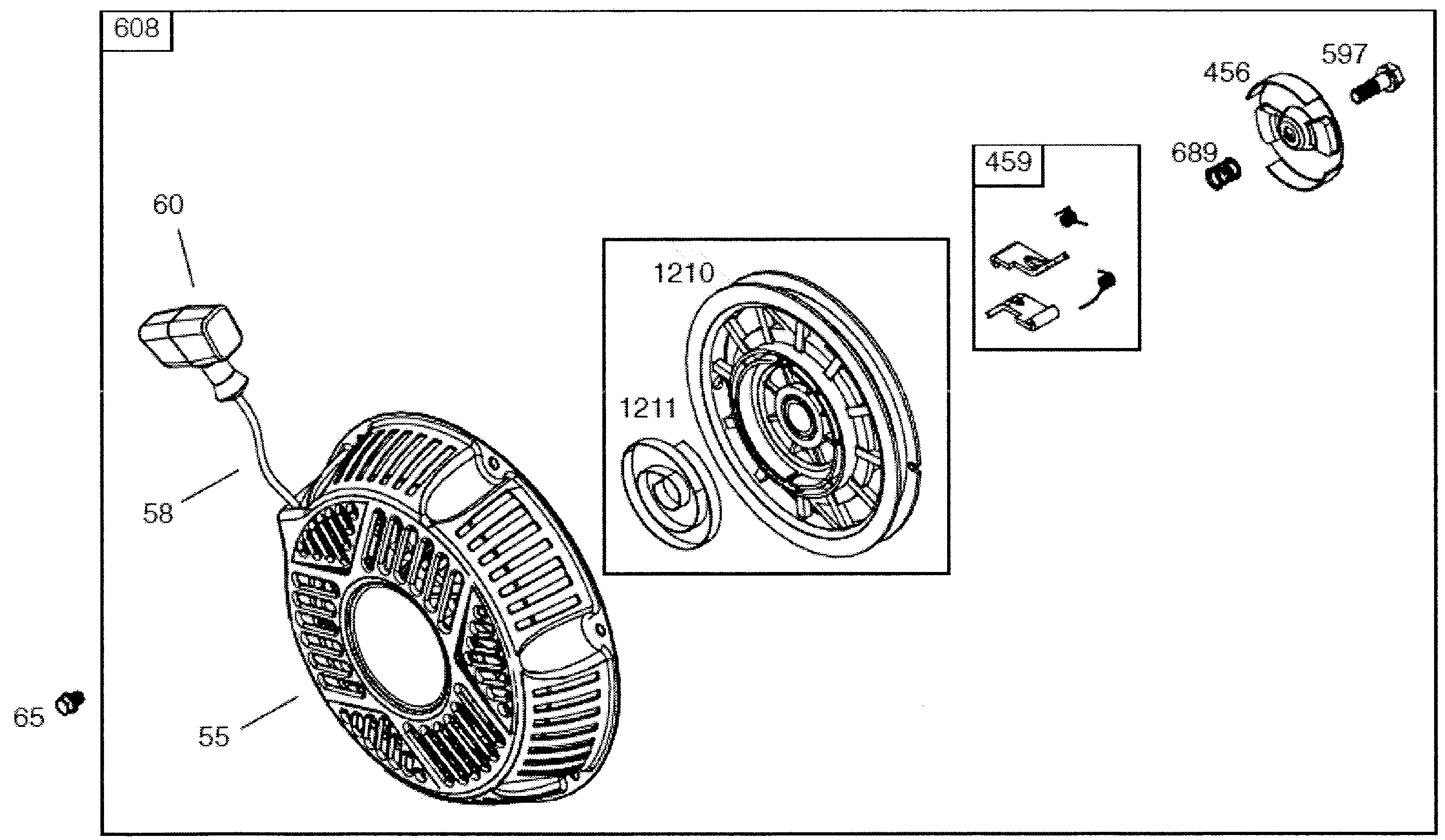 Ersatzteile für Agria # Motore # Briggs & Stratton # Art-Nr 0003255 | B&S 25T237-0142 13HP # Motor Einzelteile # Reversierstarter | B&S 13 HP 25T237-0142
