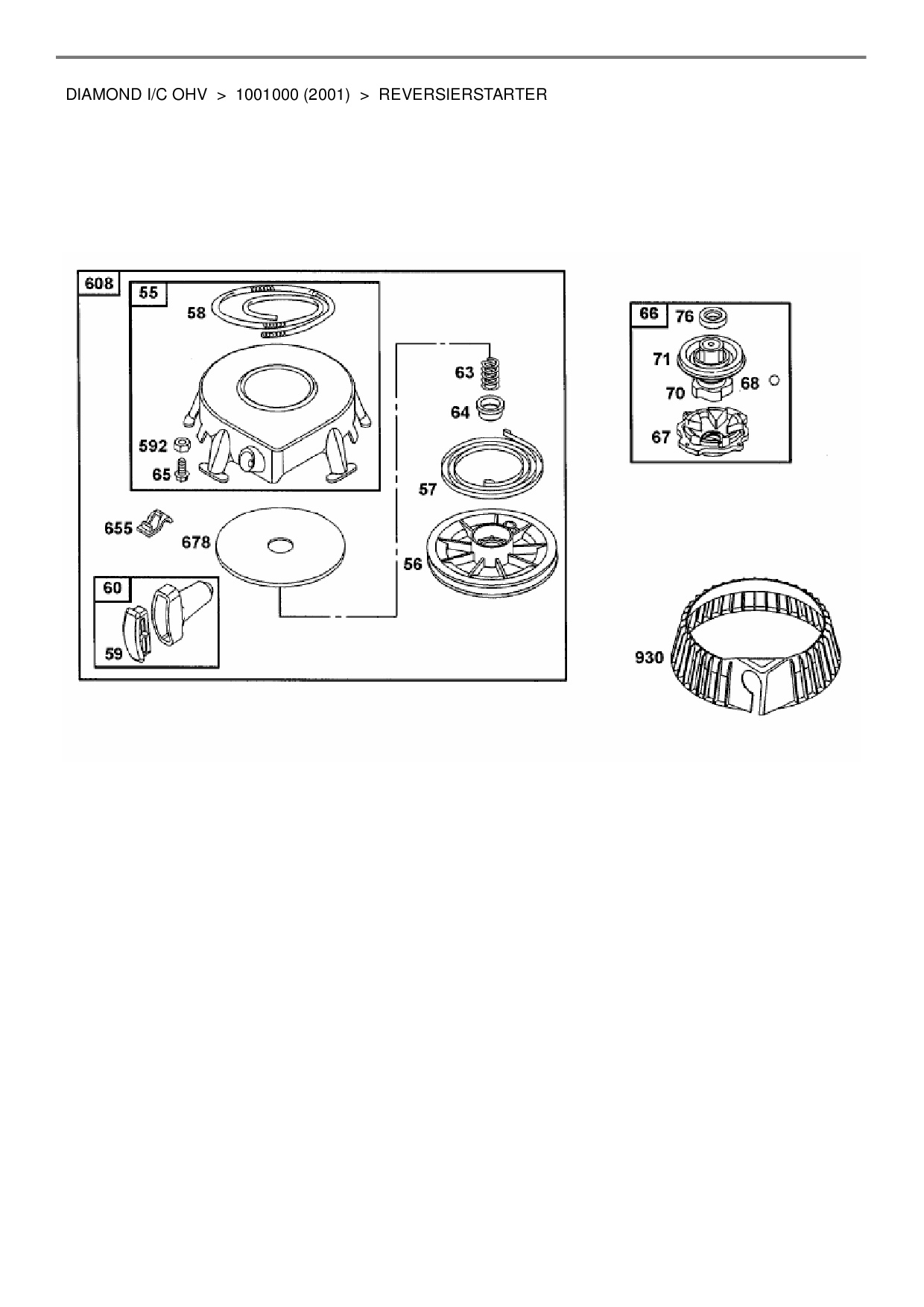 Ersatzteile für Benzinmotor Briggs&Stratton Wolf-Garten Diamond I/C OHV aus der Zeichnung Reversierstarter: