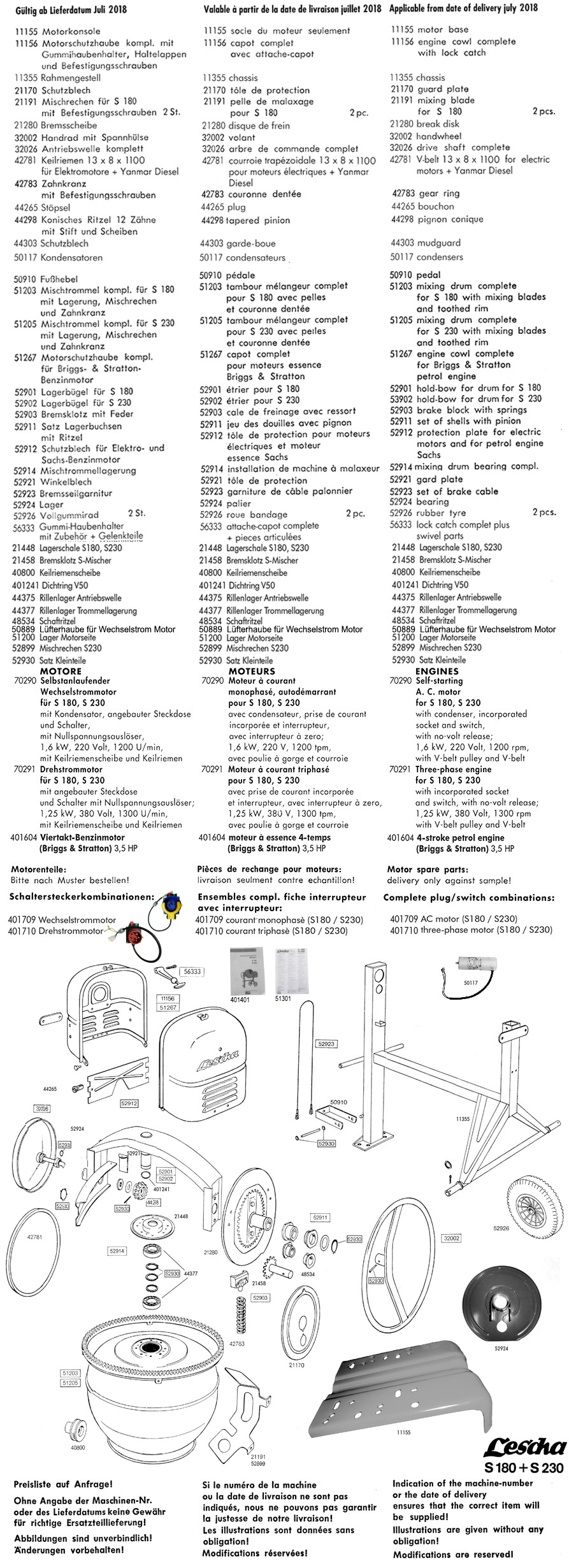 Ersatzteile für Lescha Betonmischer S 180 + S 230 (ab 07/2018) (11101203 11102203 12201203 12202203 (ab 07 2018))