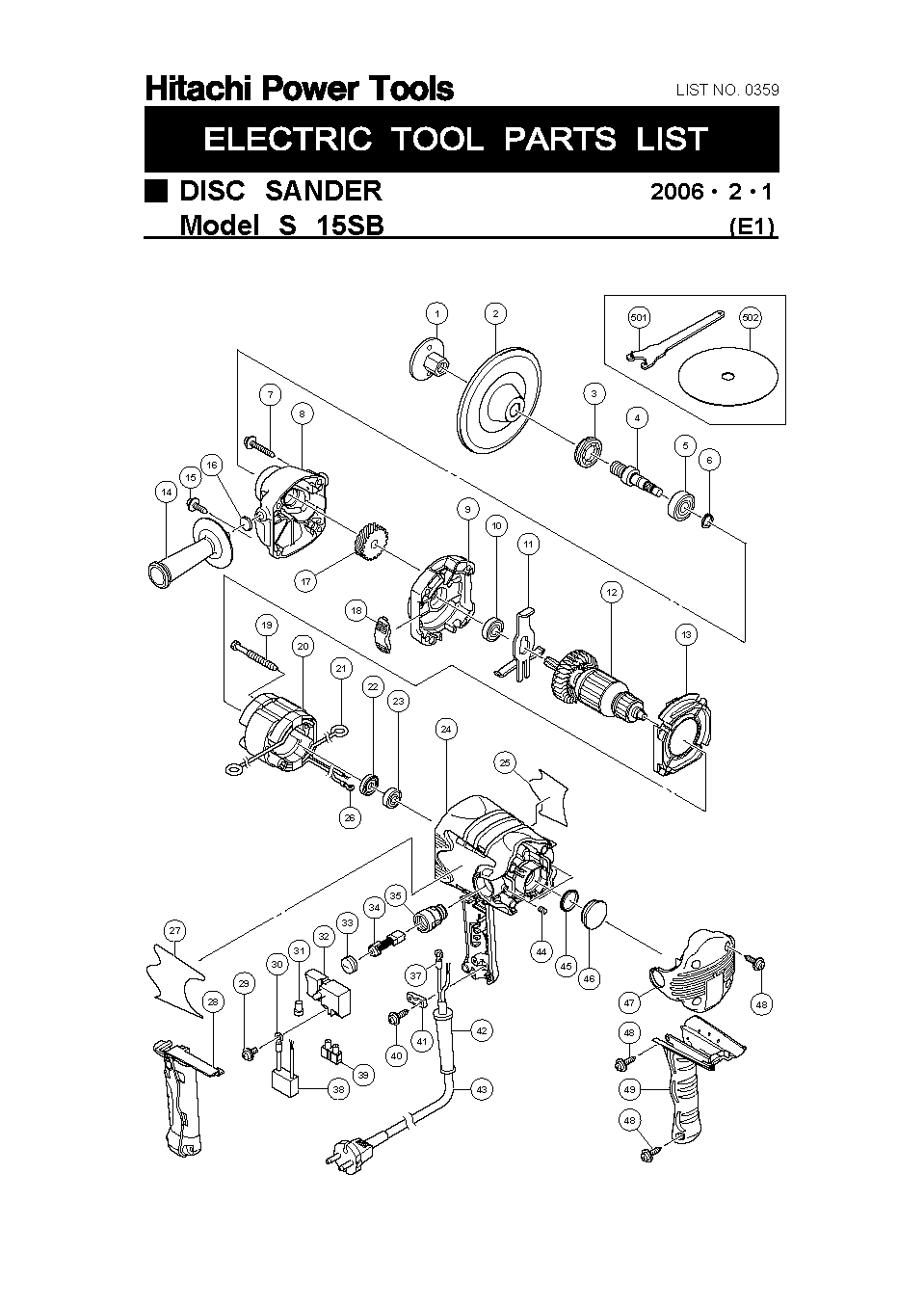 Zeichnung Sollten Sie Fragen zu einem Ersatzteil vom Hikoki (Hitachi) S15SB - Schleifer haben, können Sie uns gerne eine E-Mail (mit einem Foto vom Typenschild Ihres Gerätes) schreiben oder eine Ersatzteilanfrage stellen.