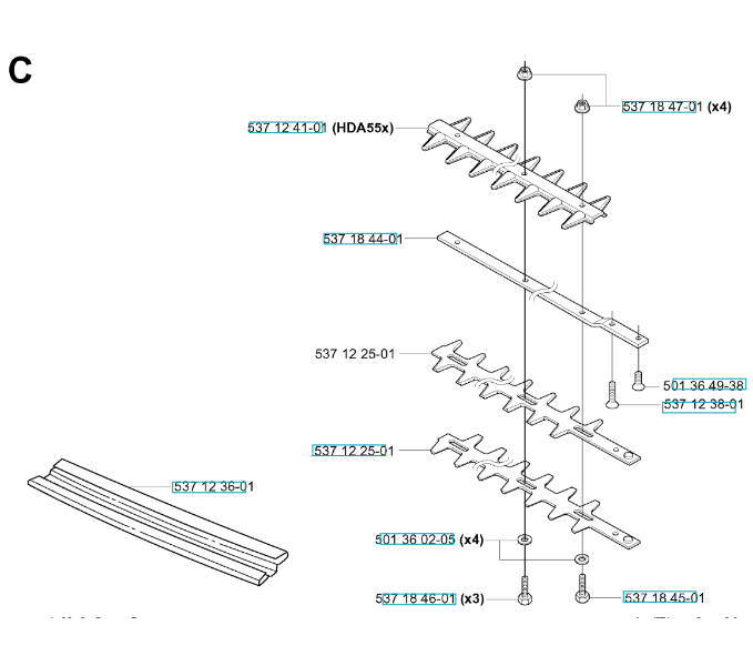 Ersatzteile für Husqvarna Heckenscheren/Stabheckenscheren 325HE4X-SERIES ( 20040100001-20050600000 ) SCHNEIDAUSRÜSTUNG: