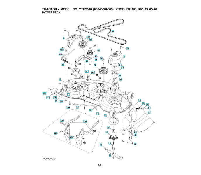 Folgende Ersatzteile für Husqvarna Gartentraktor YTH2348 ( 96043009600, 2009-10 ) SCHNEIDWERK/MÄHDECK können Sie hier bestellen: