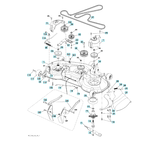 Zeichnung für Husqvarna Gartentraktor YTH24K48 ( 96043014001, 2012-10 ) SCHNEIDWERK/MÄHDECK