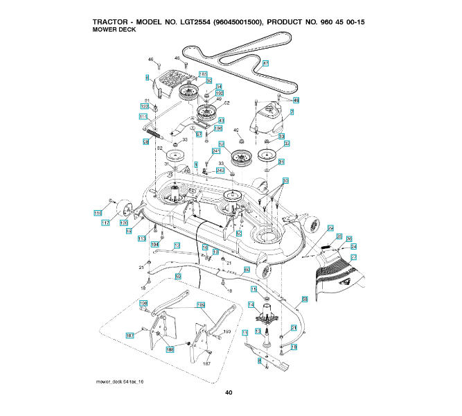 Ersatzteile für Husqvarna Gartentraktor LGT2554 ( 96045001500, 2009-01 ) SCHNEIDWERK/MÄHDECK: