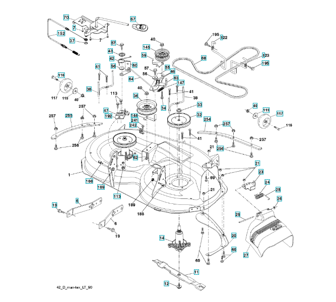 Zeichnung für Husqvarna Gartentraktor TS142X ( 96043030200, 2019-08 ) SCHNEIDWERK/MÄHDECK