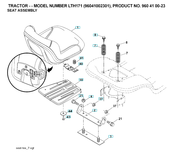 Ersatzteile für Husqvarna Gartentraktor LTH171 ( 96041002301, 2007-06 ) SITZ: