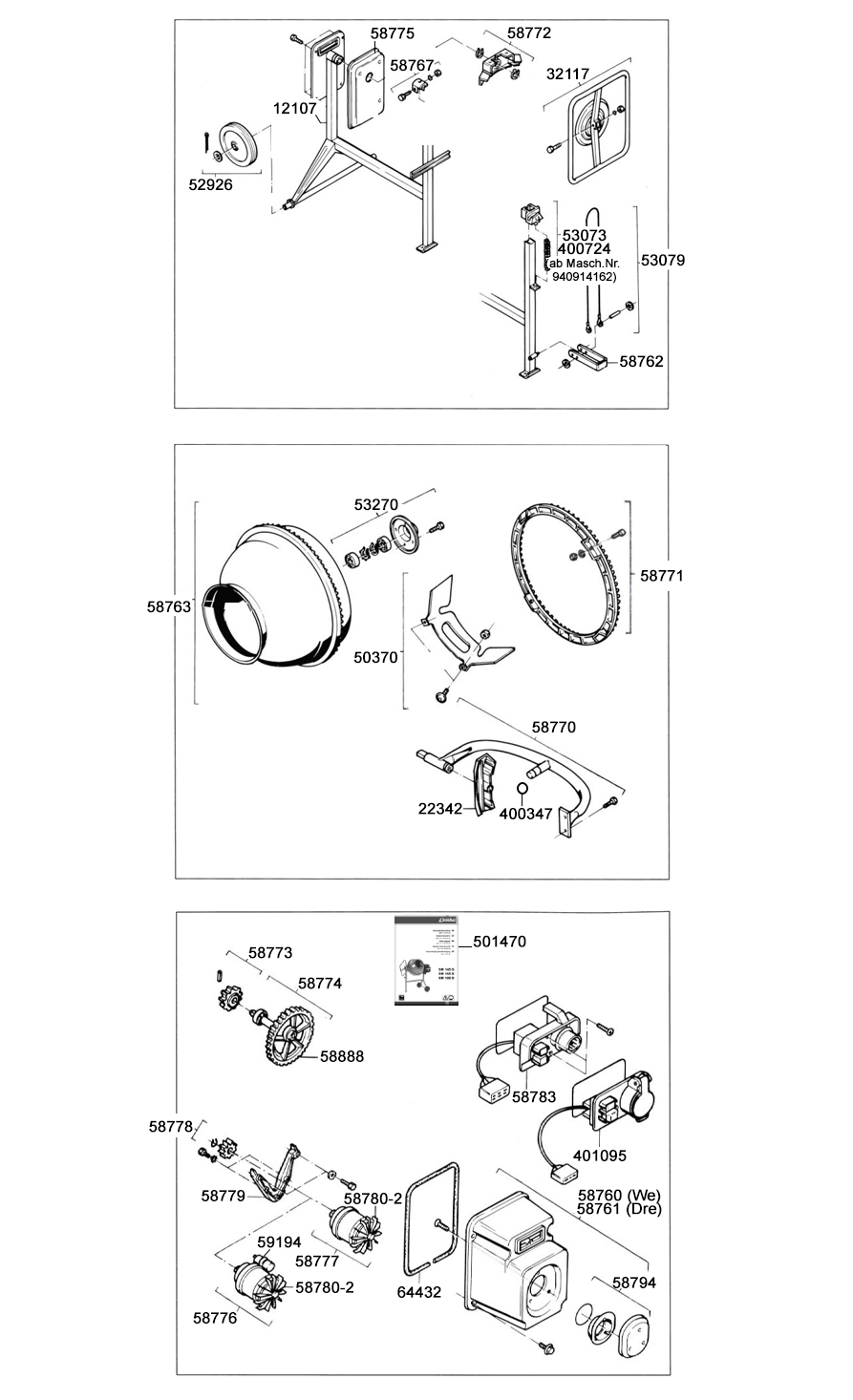 Zeichnung Sollten Sie Fragen zu einem Ersatzteil vom Lescha Mischmaschinen 160 - 480 L haben, können Sie uns gerne eine E-Mail (mit einem Foto vom Typenschild Ihres Gerätes) schreiben oder eine Ersatzteilanfrage stellen.
