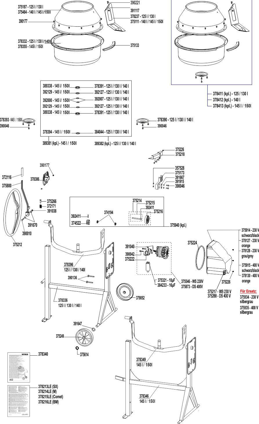 Ersatzteile für Atika Betonmischer SX 130 (S) / SX 145 (S) (ab 05/2014) (320051 320280 320281)