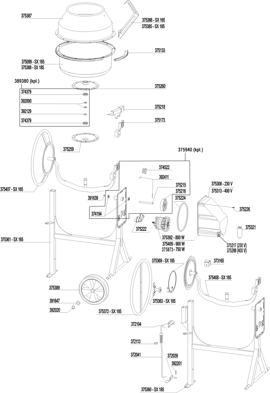 Ersatzteile für Atika Betonmischer SX 165 / 185 (320503 320761)