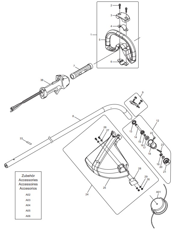 Ersatzteile für Dolmar Sensen und Trimmer Benzin 4-Takt LT-245.4 Schaftrohr, Handgriff: