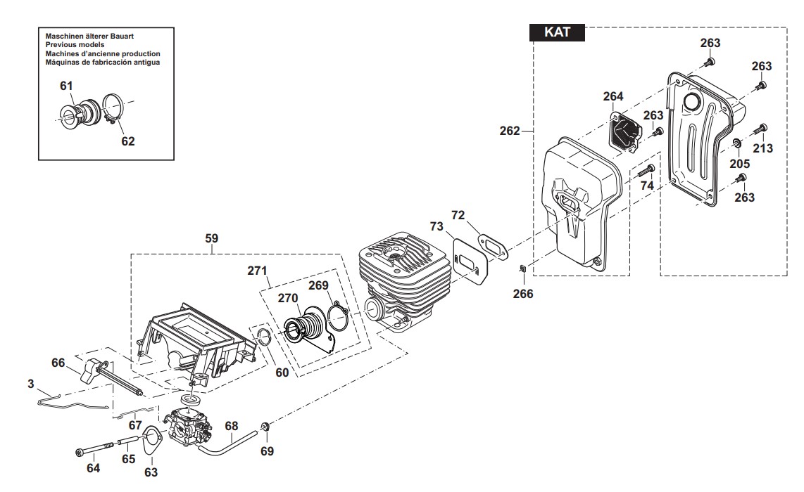 Ersatzteile für Dolmar Trennschleifer Benzin PC-7312 S Schalldämpfer, Ansaugkrümmer: