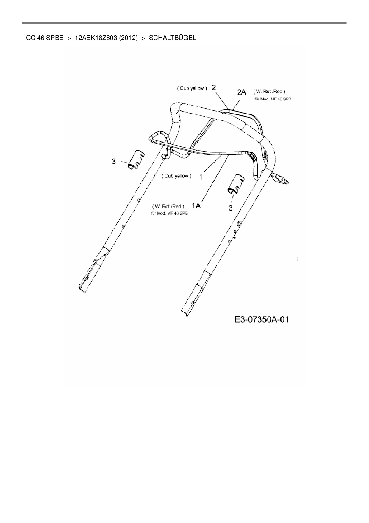 Zeichnung für Cub Cadet Motormäher mit Antrieb CC 46 SPBE mit der Geräte-Artikelnr. 12AEK18Z603 ab Baujahr 2012: