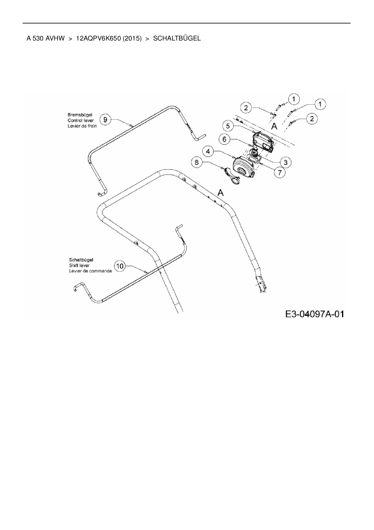 Download Ersatzteil-Zeichnung Wolf-Garten A 530 AVHW Zeichnung Schaltbügel (JPG-Format)