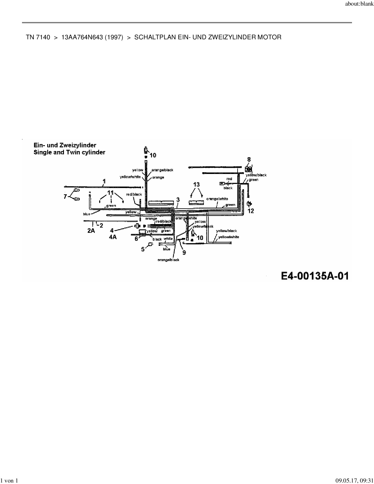 Ersatzteile für Rasentraktor Yard-Man TN 7140 aus der Zeichnung Schaltplan Ein- und Zweizylinder Motor: