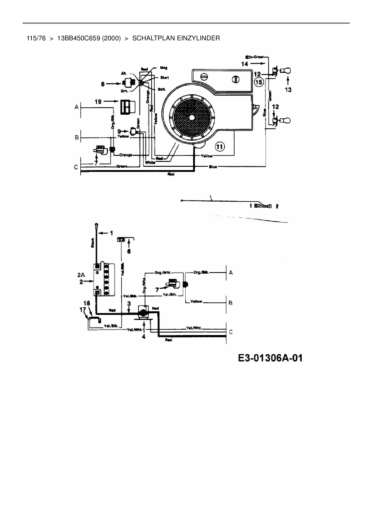 Ersatzteile für Rasentraktor Mastercut 115/76 aus der Zeichnung Schaltplan Einzylinder: