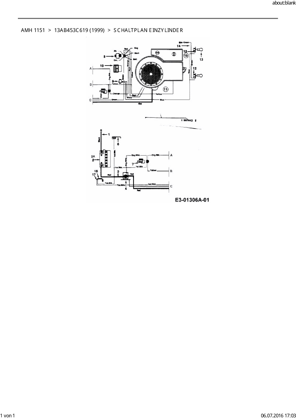 Ersatzteile für Rasentraktor FLEURELLE AMH 1151 aus der Zeichnung Schaltplan Einzylinder: