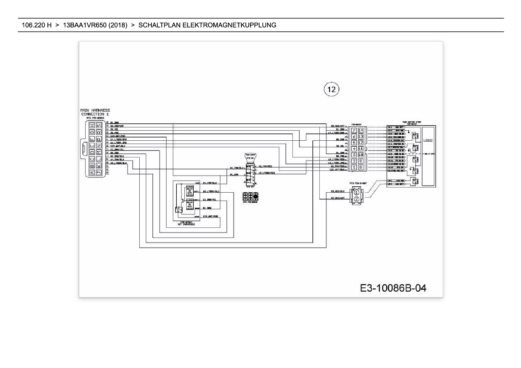 Ersatzteile für Rasentraktor Wolf-Garten Expert 106.220 H aus der Zeichnung Schaltplan Elektromagnetkupplung (2):