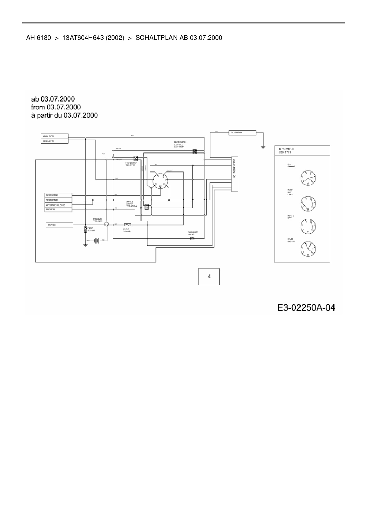 Ersatzteile für Rasentraktor Yard-Man AH 6180 aus der Zeichnung Schaltplan ab 03.07.2000: