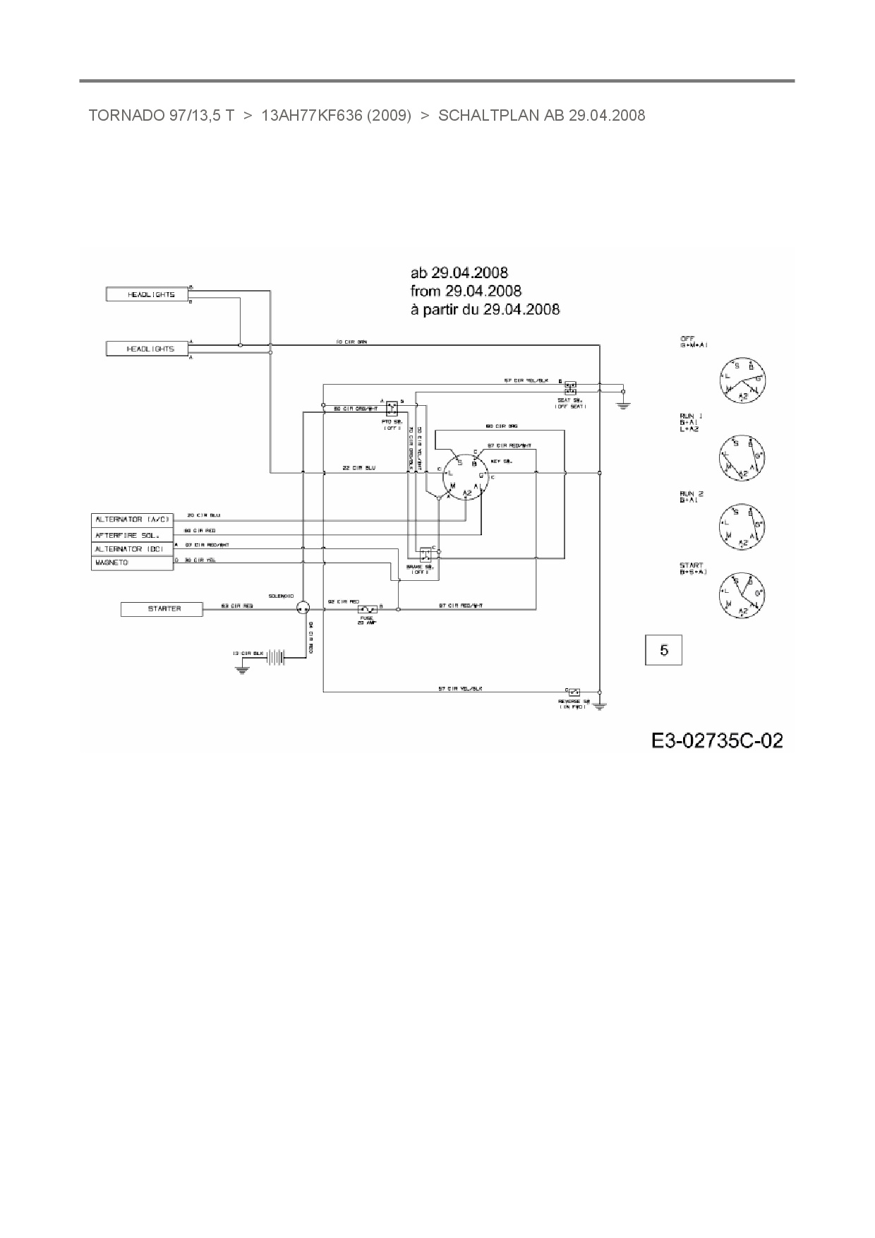 Ersatzteile für Rasentraktor Oleo-Mac Tornado 97/13,5 T aus der Zeichnung Schaltplan ab 29.04.2008: