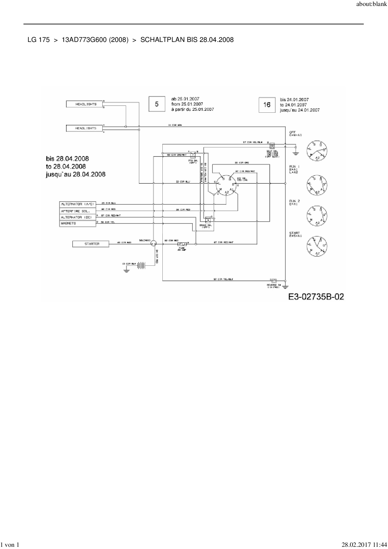 Ersatzteile für Rasentraktor MTD LG 175 aus der Zeichnung Schaltplan bis 28.04.2008:
