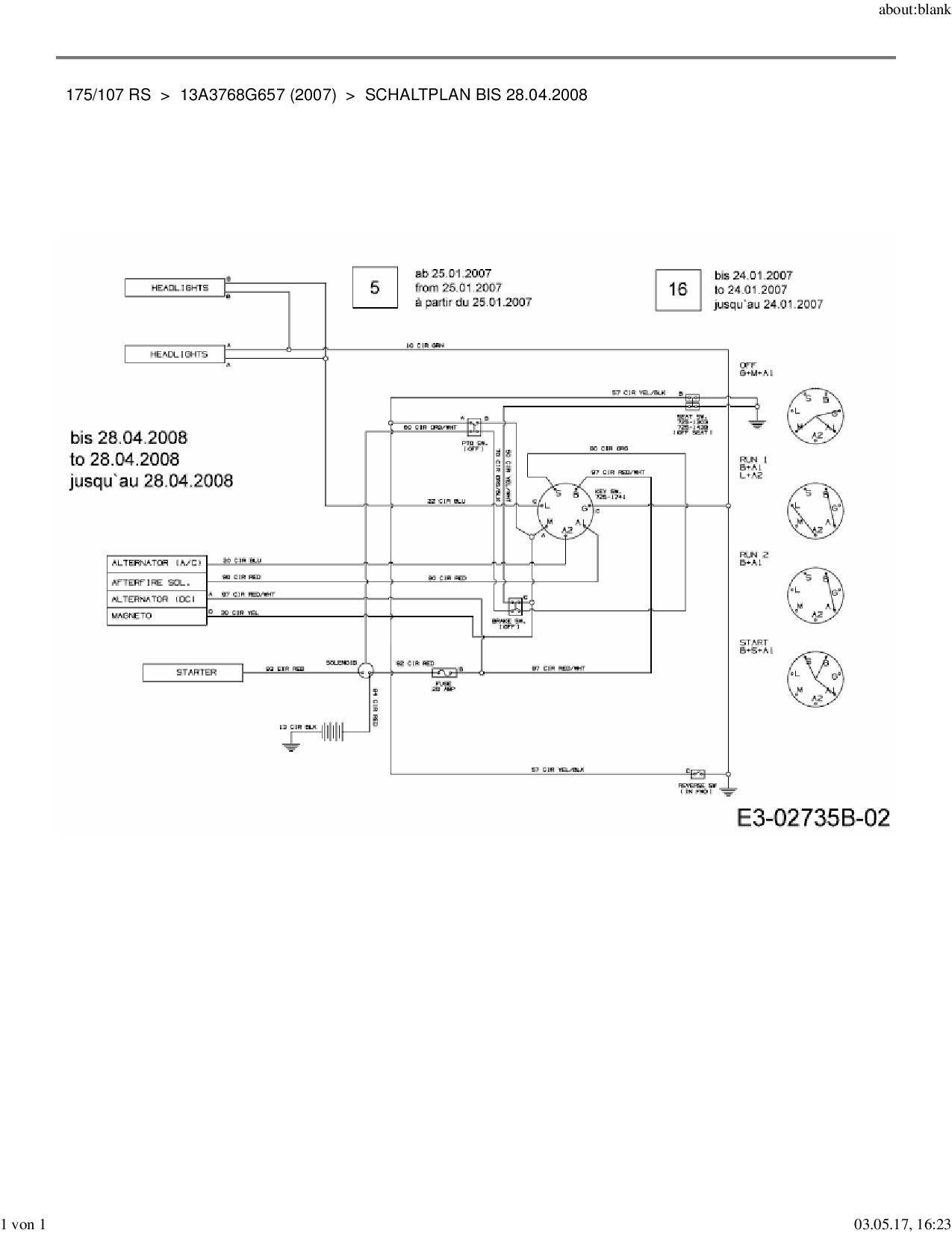 Ersatzteile für Rasentraktor Mastercut 175/107 RS aus der Zeichnung Schaltplan bis 28.04.2008: