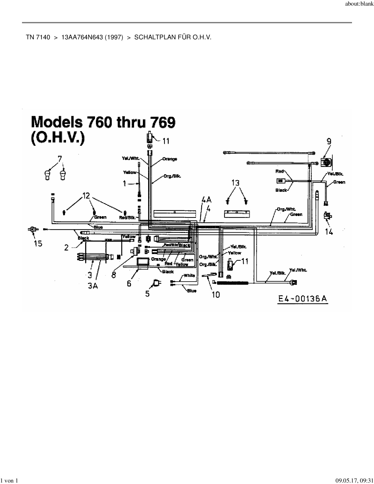 Ersatzteile für Rasentraktor Yard-Man TN 7140 aus der Zeichnung Schaltplan für O.H.V.: