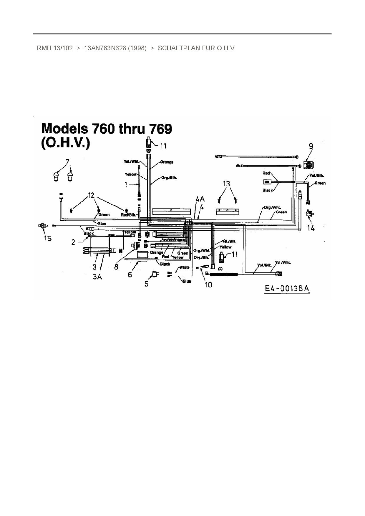 Ersatzteile für Rasentraktor Raiffeisen RMH 13/102 aus der Zeichnung Schaltplan für O.H.V.: