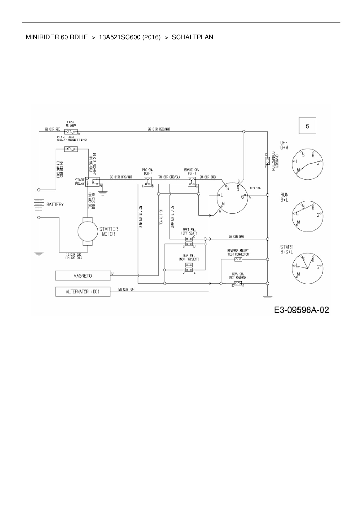 Ersatzteile für Rasentraktor MTD Minirider 60 RDHE aus der Zeichnung Schaltplan: