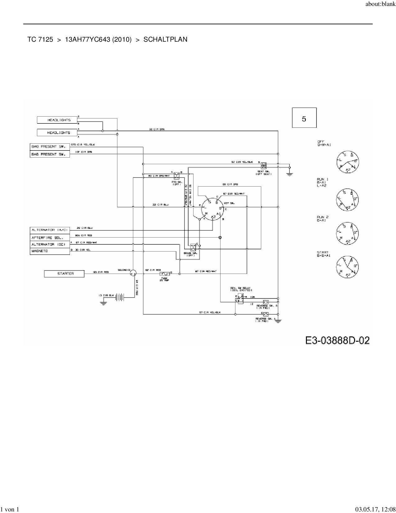 Ersatzteile für Rasentraktor Yard-Man TC 7125 aus der Zeichnung Schaltplan: