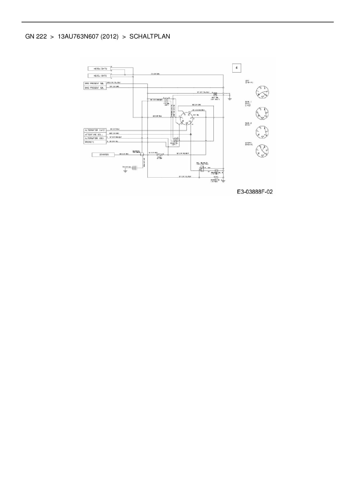 Ersatzteile für Rasentraktor Blisar GN 222 aus der Zeichnung Schaltplan:
