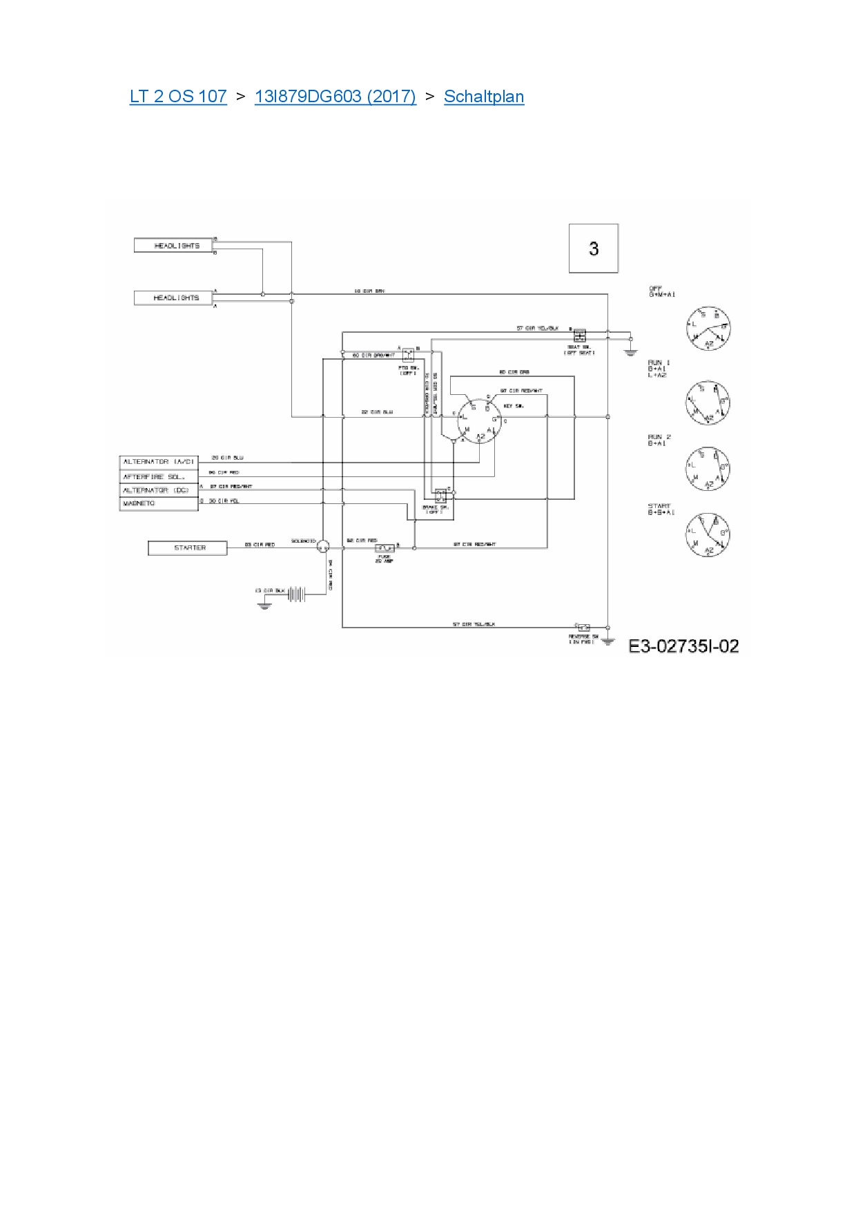 Ersatzteile für Rasentraktor Cub Cadet LT 2 OS 107 aus der Zeichnung Schaltplan:
