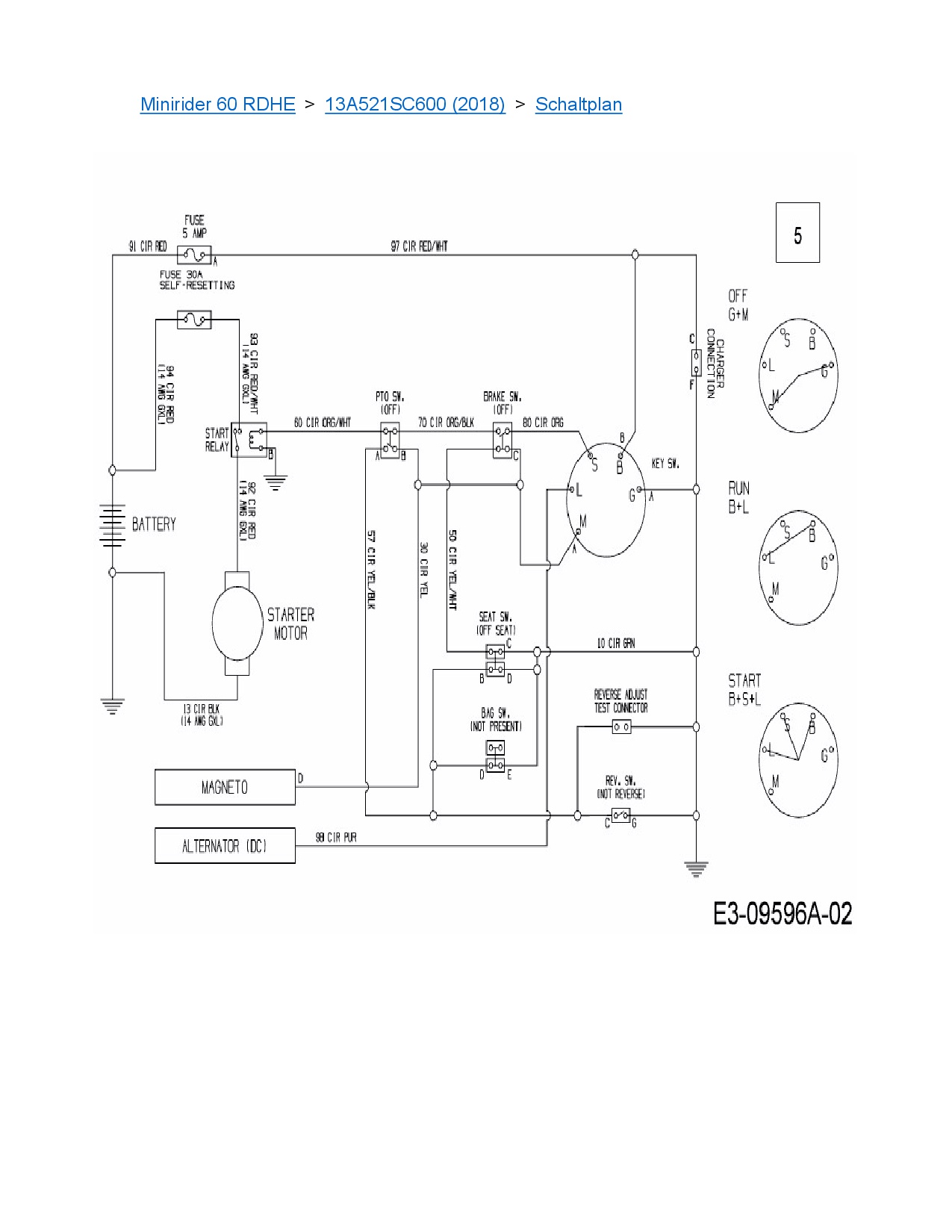 Ersatzteile für Rasentraktor MTD Minirider 60 RDHE aus der Zeichnung Schaltplan: