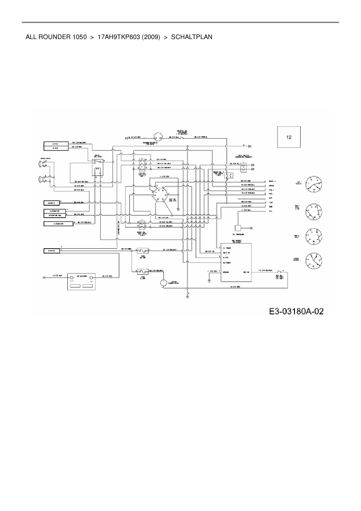 Ersatzteile für Zero Turn Cub Cadet All Rounder 1050 aus der Zeichnung Schaltplan: