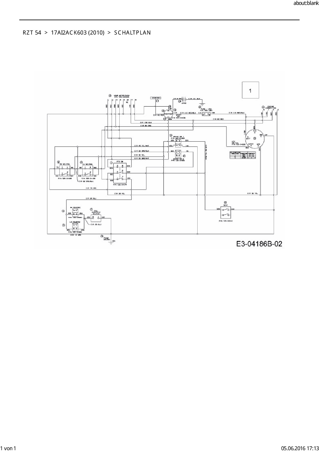 Ersatzteile für Zero Turn Cub Cadet RZT 54 aus der Zeichnung Schaltplan: