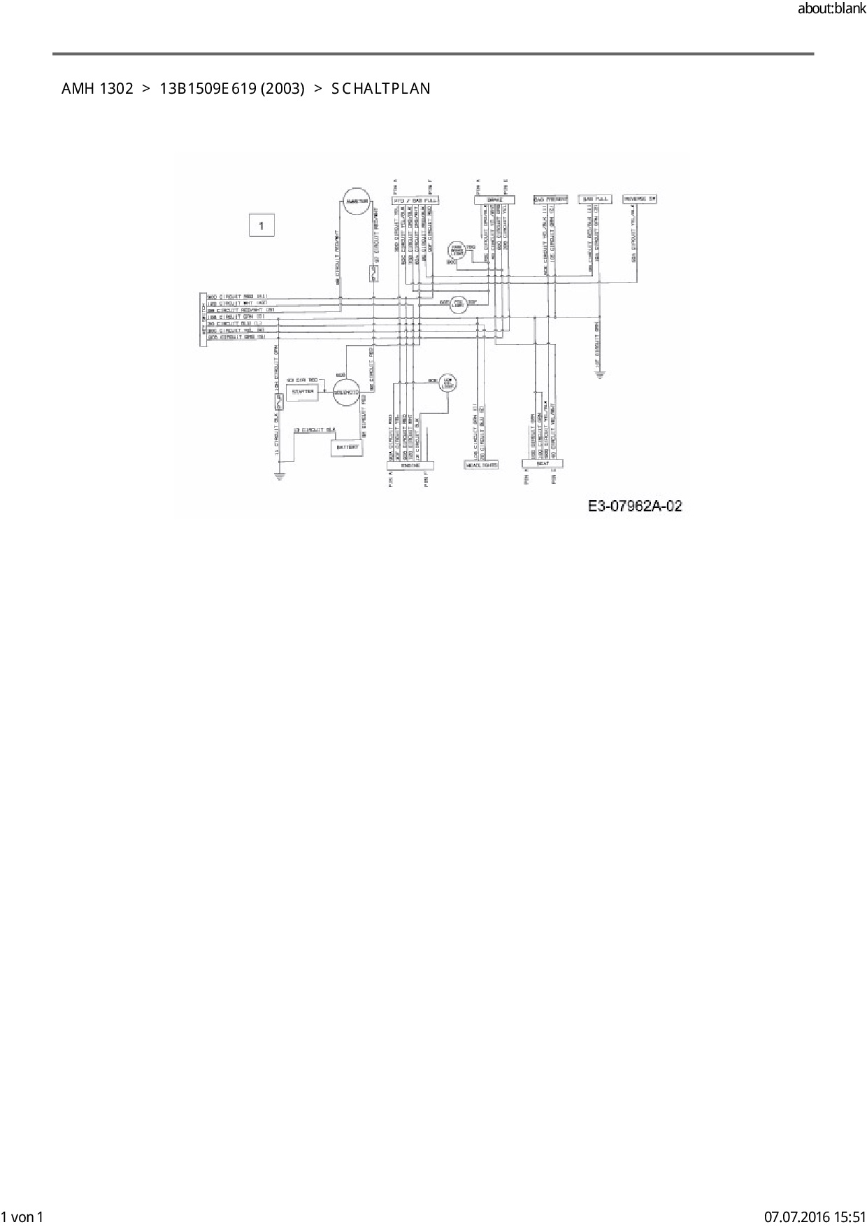 Ersatzteile für Rasentraktor FLEURELLE AMH 1302 aus der Zeichnung Schaltplan: